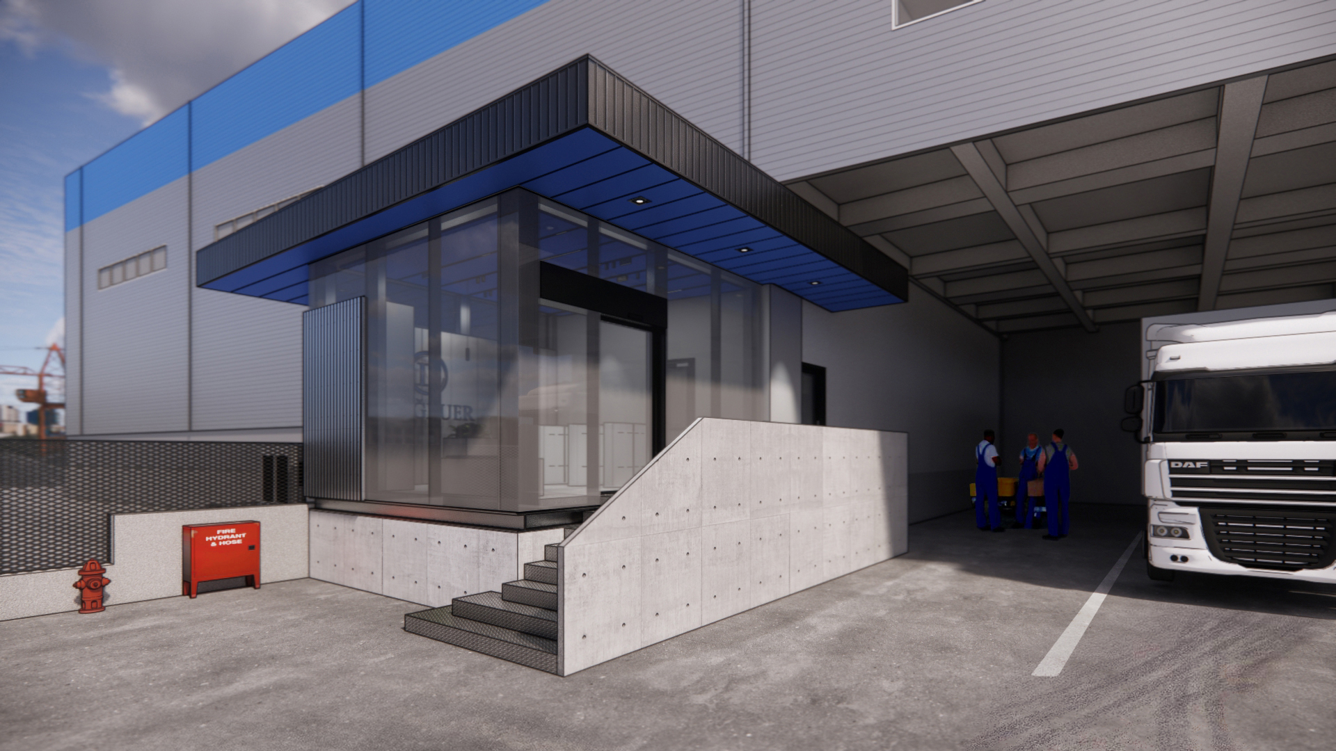 In the factory building of a logistics company, an entrance addition was designed to align with the existing architectural character of the facility. Considering the company’s expanding needs, the entry scenario was re-evaluated.